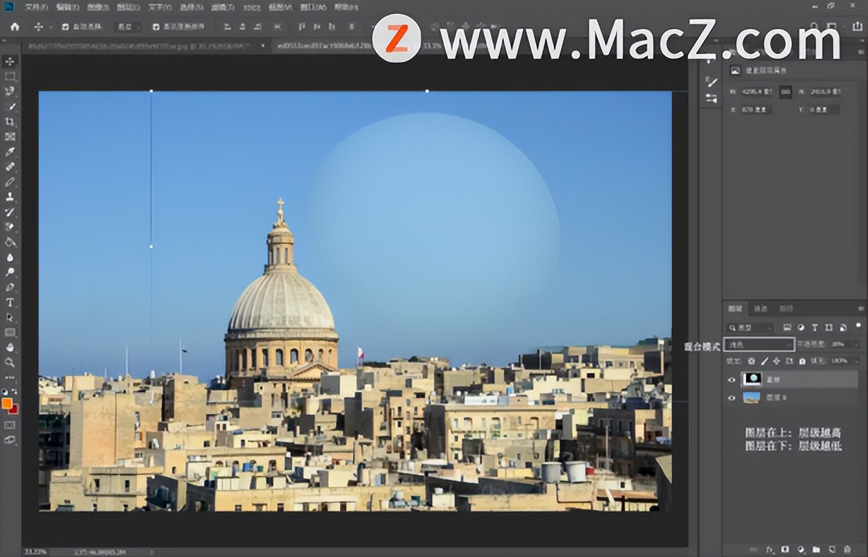 14.图层面板我们看到屏幕左下方的便是「图层面板」从下图中我们能看到「混合面板」「不透明度」「图层排列顺序」等「混合模式」:将图片以不同的模式进行混合(一般用的时候是可以实时预览的)「图层面板」:图层在上,层级越高。图层在下,层级越低。比如说在下图中:「星球」就在「图层0」的上方。